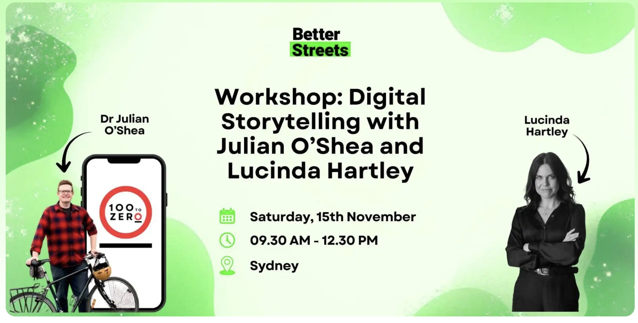 The workshop hosted by Dr Julian O’Shea, an academic, transport expert and social media creator, who has been named the YouTube Breakout Creator of the Year and selected for the Skip Ahead program funded by Screen Australia. And Lucinda Hartley, an urbanist, keynote speaker and entrepreneur named as one of Australia's 100 Most Influential Women by the Australian Financial Review.