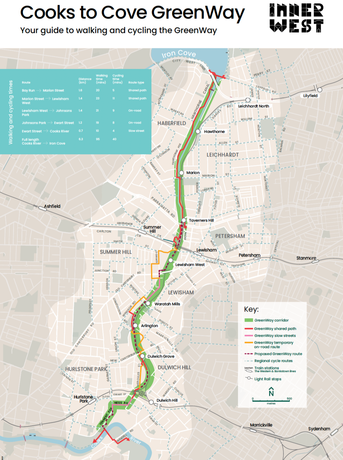 Cooks to Cove GreenWay map - Your guide to walking and cycling the GreenWay. Source: Inner West Council